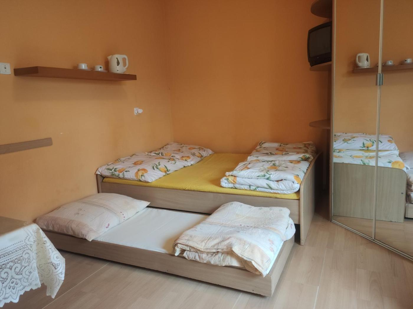 Pokój Dwuosobowy typu Deluxe (2 osoby dorosłe + 1 dziecko). The double room offers a wardrobe, an electric kettle, a balcony with ancourtyard view as well as a private bathroom featuring a shower. The unit offers 1 bed and 1 futon. Pokój Dwuosobowy - 3 osobowy. Powierzchnia pokoju ok.: 14 mkw.