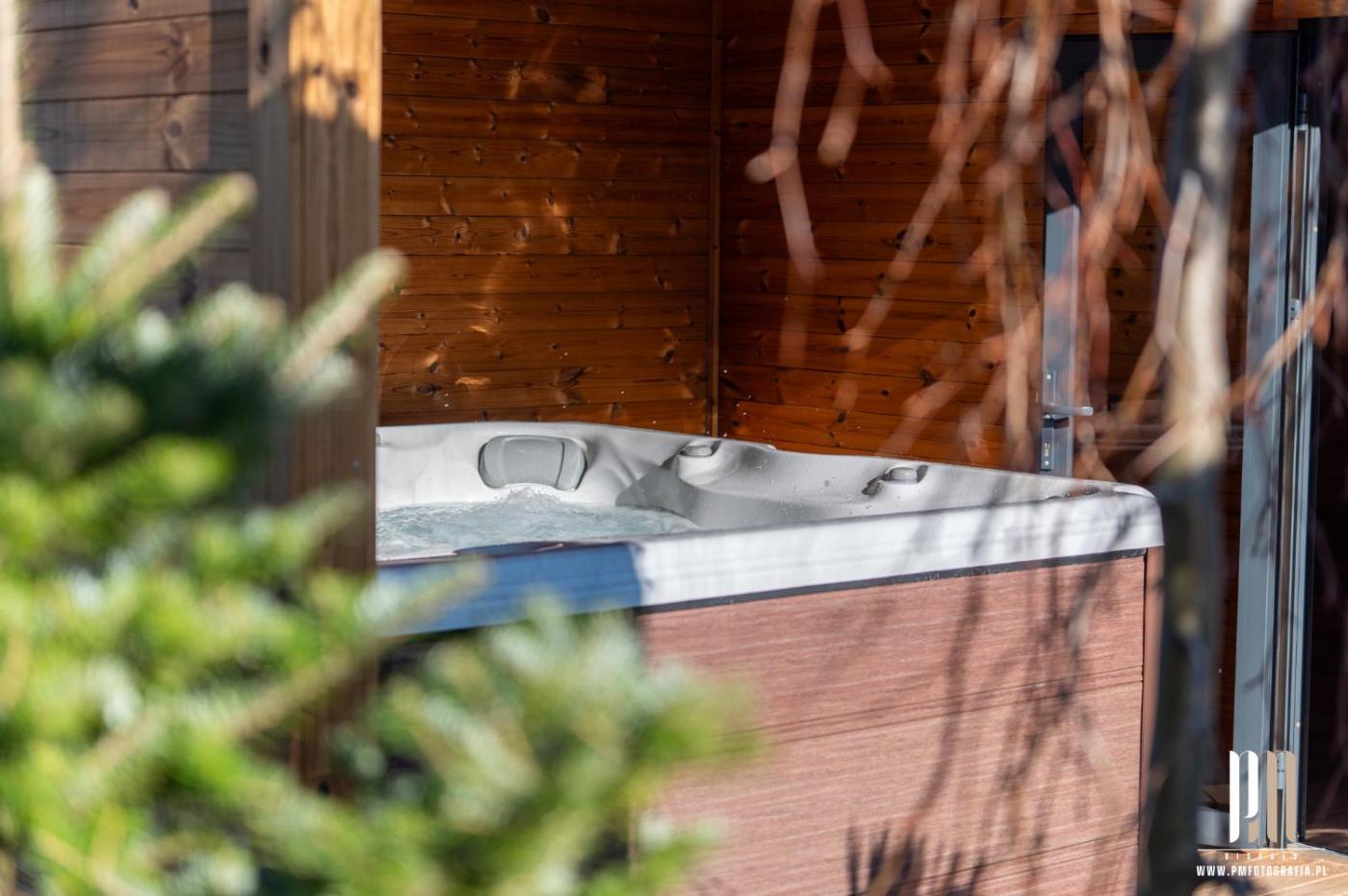 Dom z 2 sypialniami. The hot tub and spa bath are the standout features of this holiday home. Boasting a private entrance, this air-conditioned holiday home includes 1 living room, 2 separate bedrooms and 2 bathrooms with a walk-in shower and a hairdryer. Guests will find a stovetop, a refrigerator, a dishwasher and kitchenware in the well-equipped kitchenette. The holiday home also features a barbecue. Featuring a terrace with garden views, this holiday home also offers a washing machine and a flat-screen TV with streaming services. The unit has 5 beds. Dom wakacyjny - 8 osobowy. Powierzchnia pokoju ok.: 80 mkw. ;